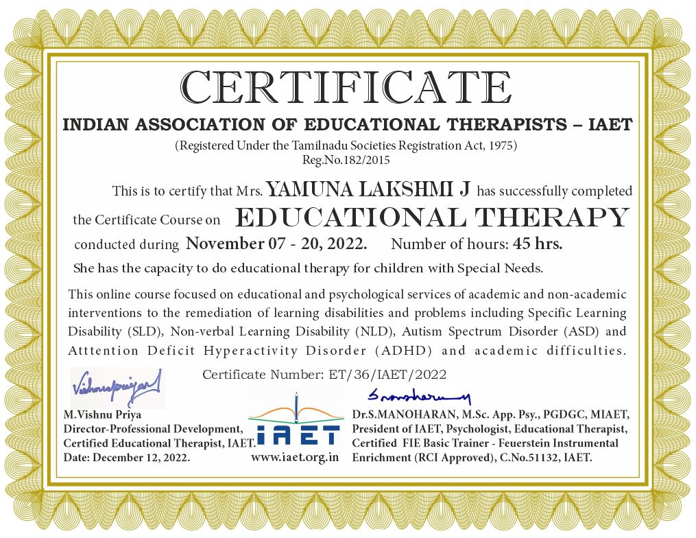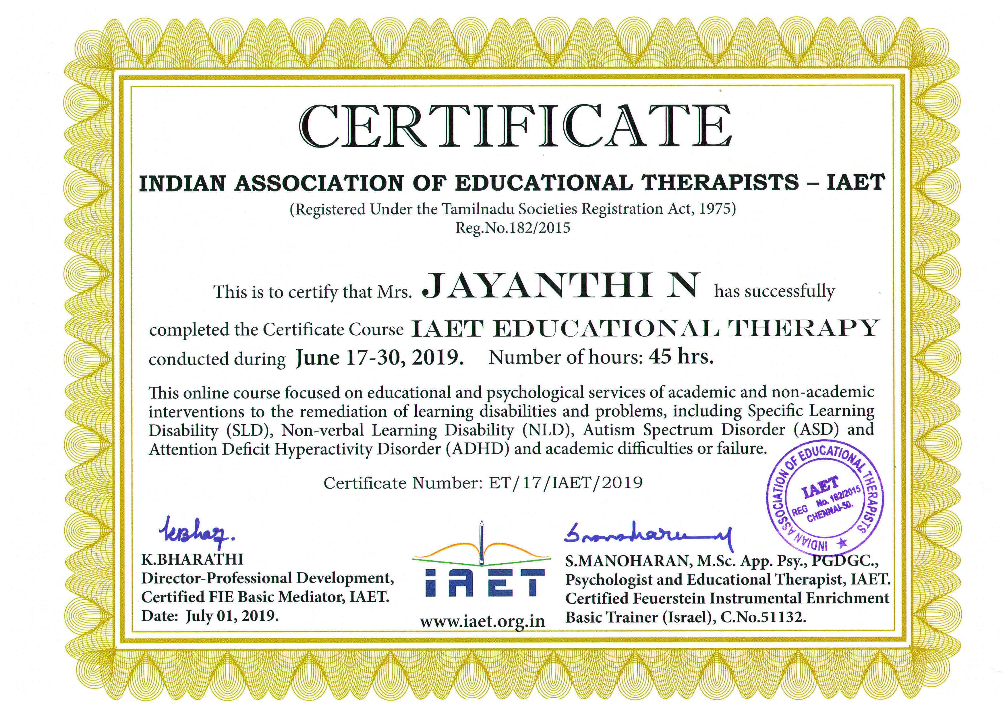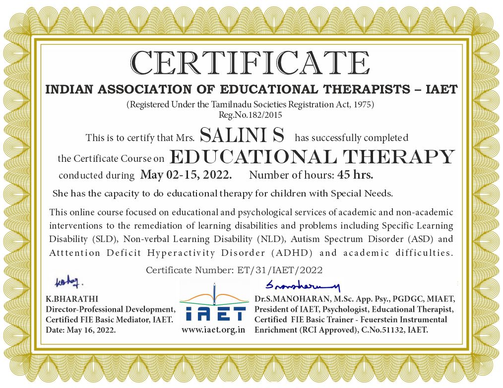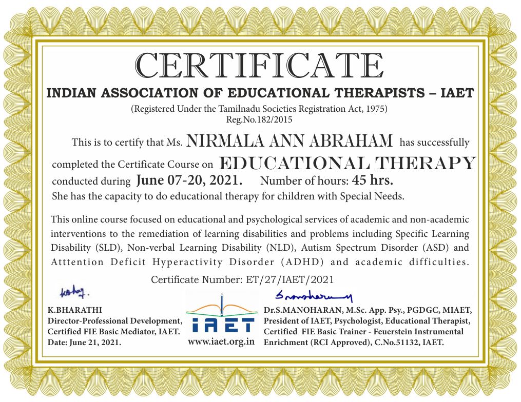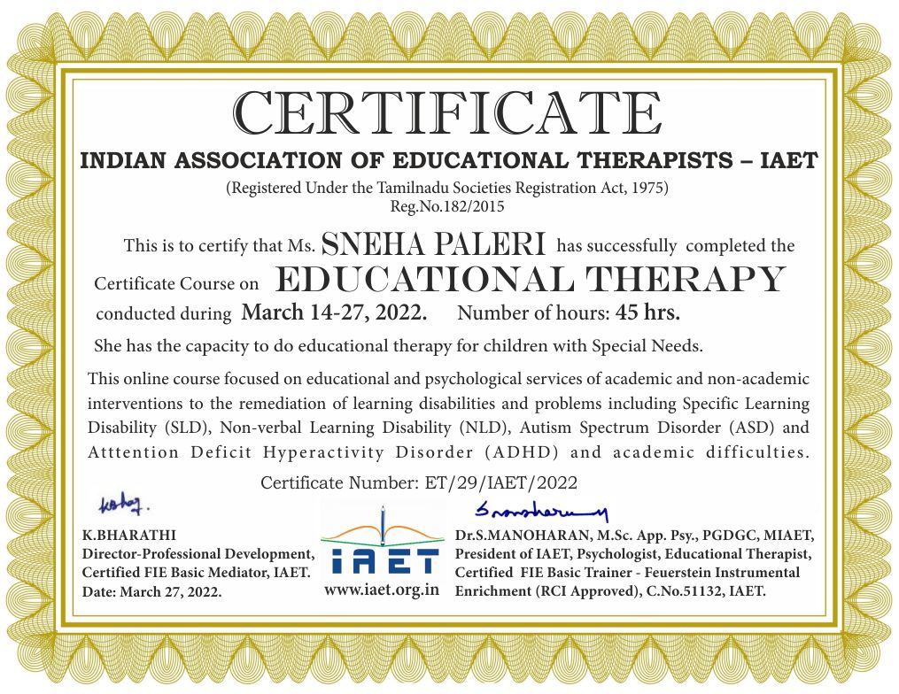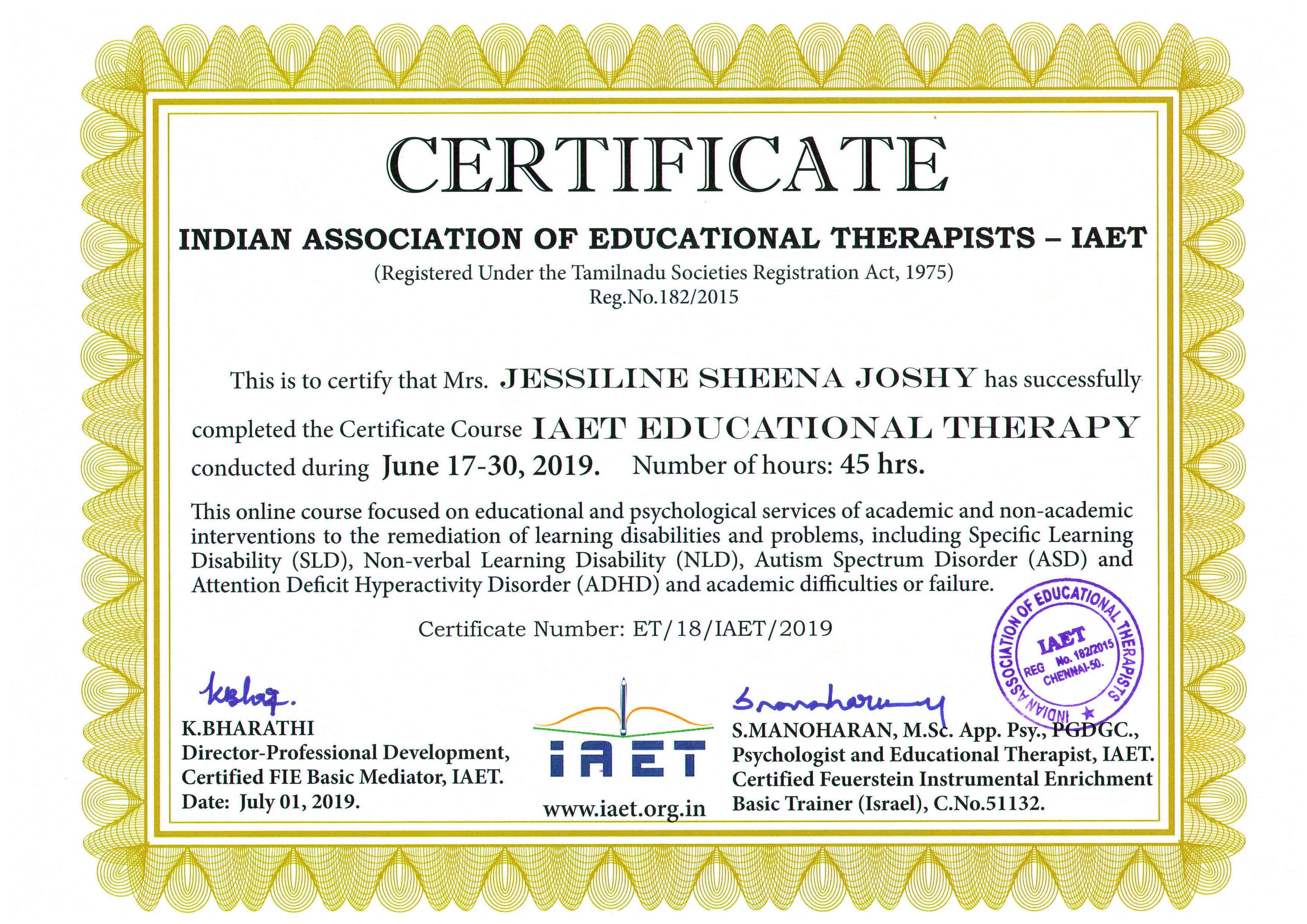 INDIAN ASSOCIATION OF EDUCATIONAL THERAPISTS - IAET