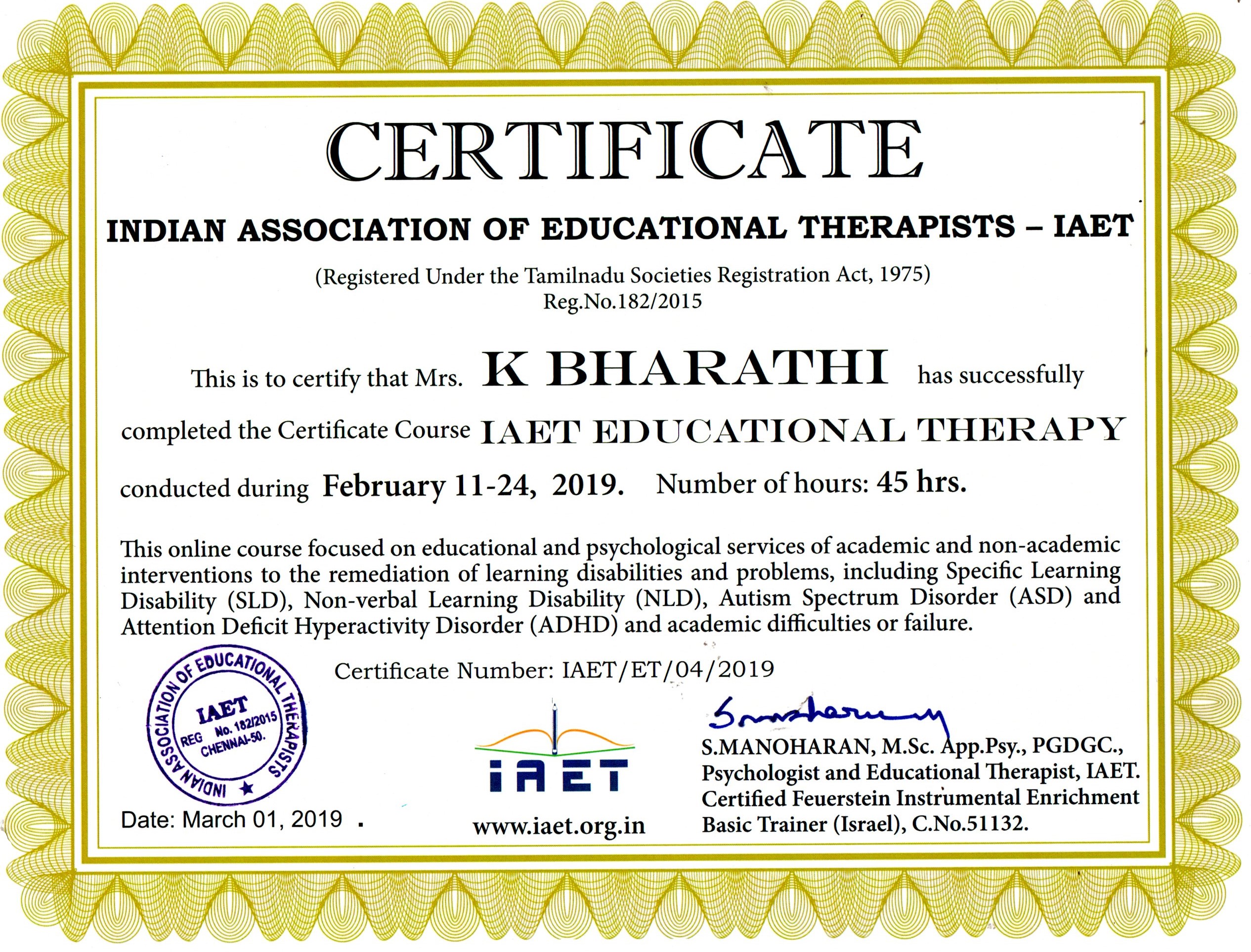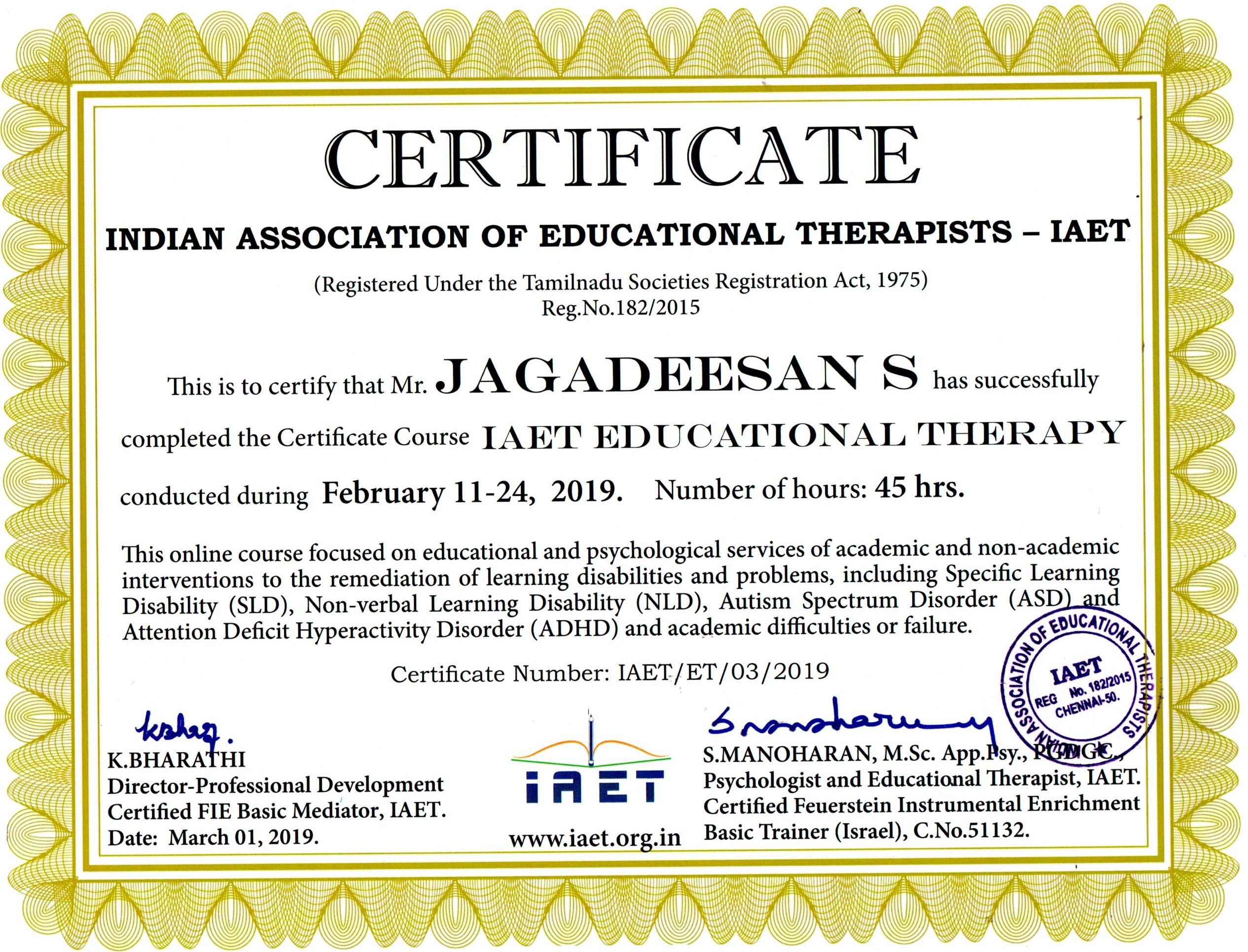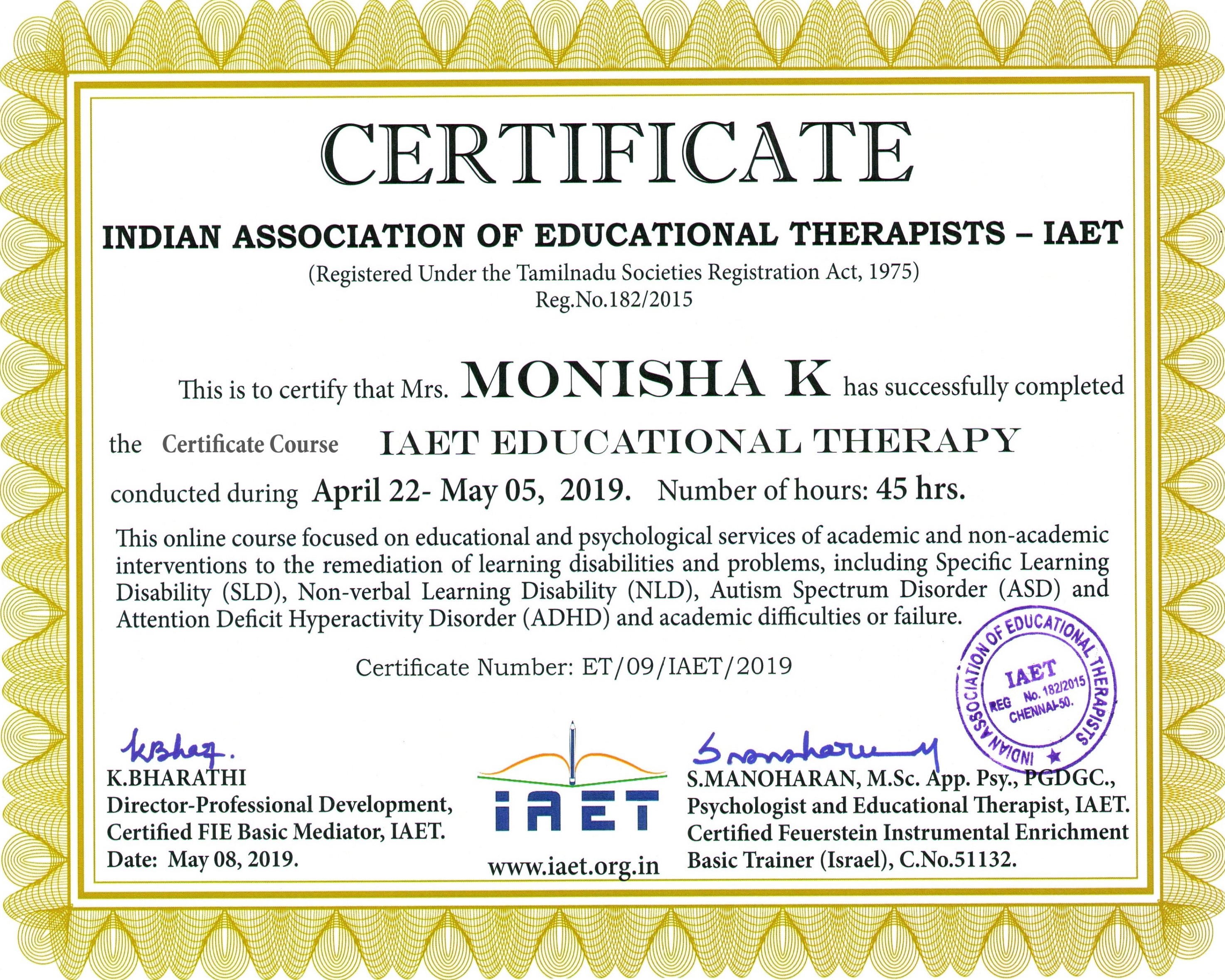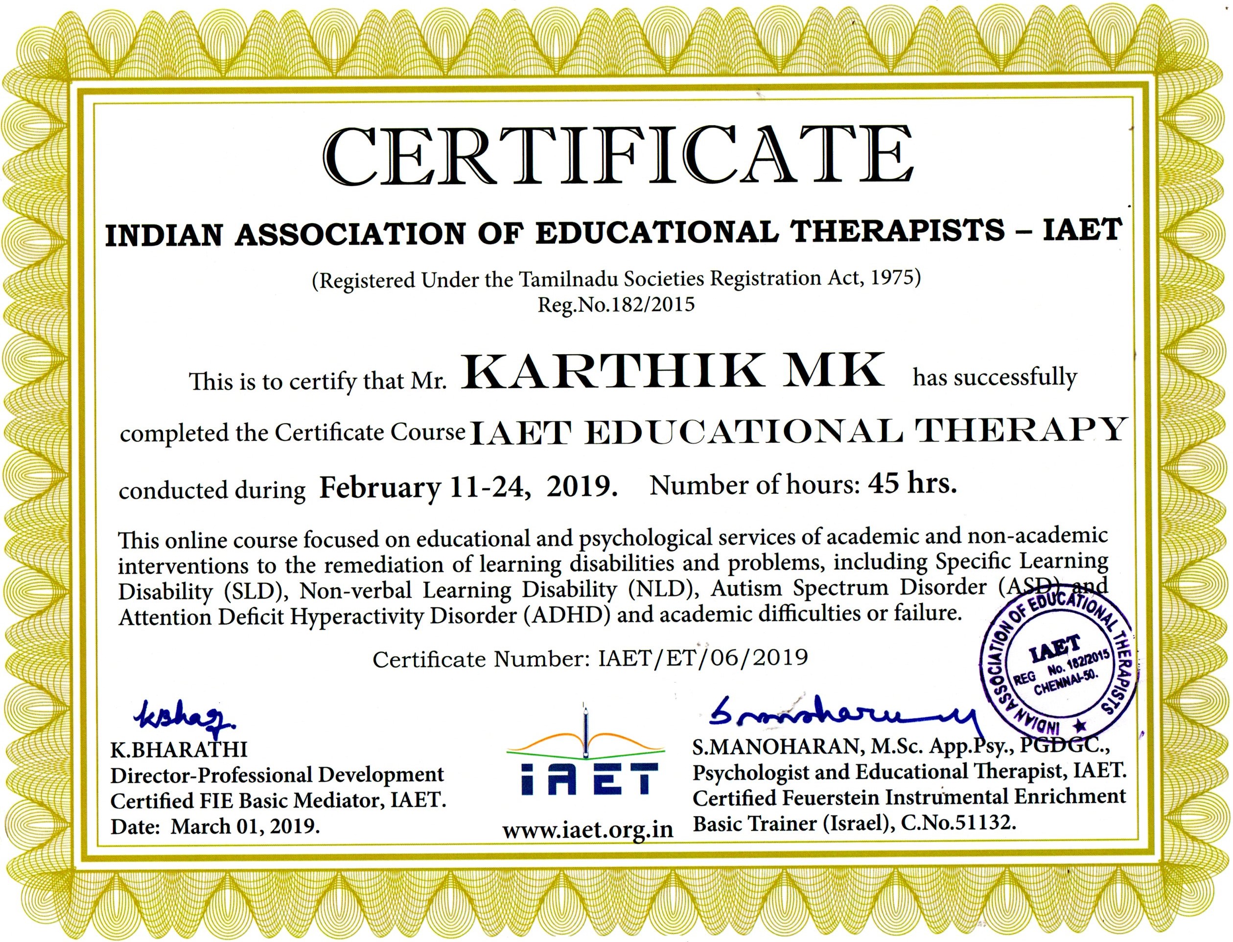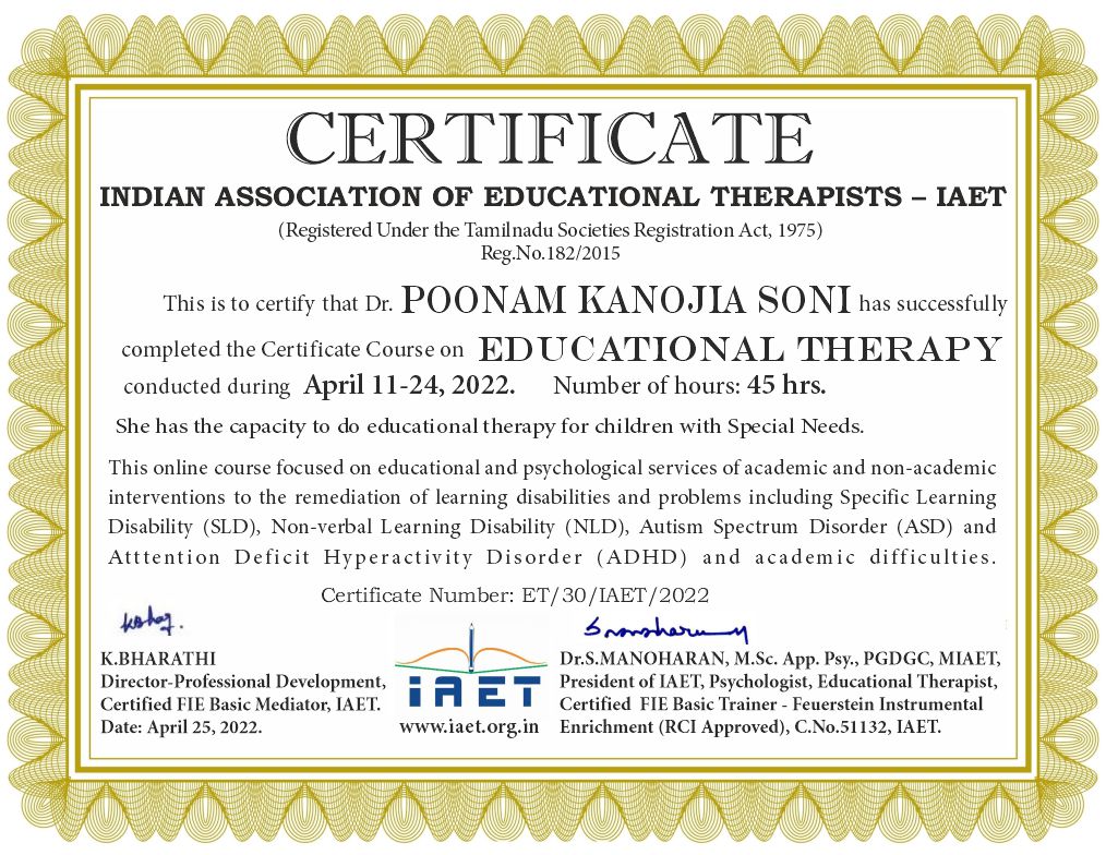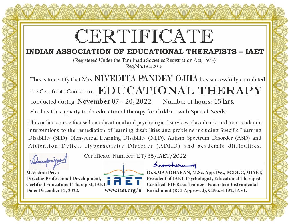 INDIAN ASSOCIATION OF EDUCATIONAL THERAPISTS - IAET