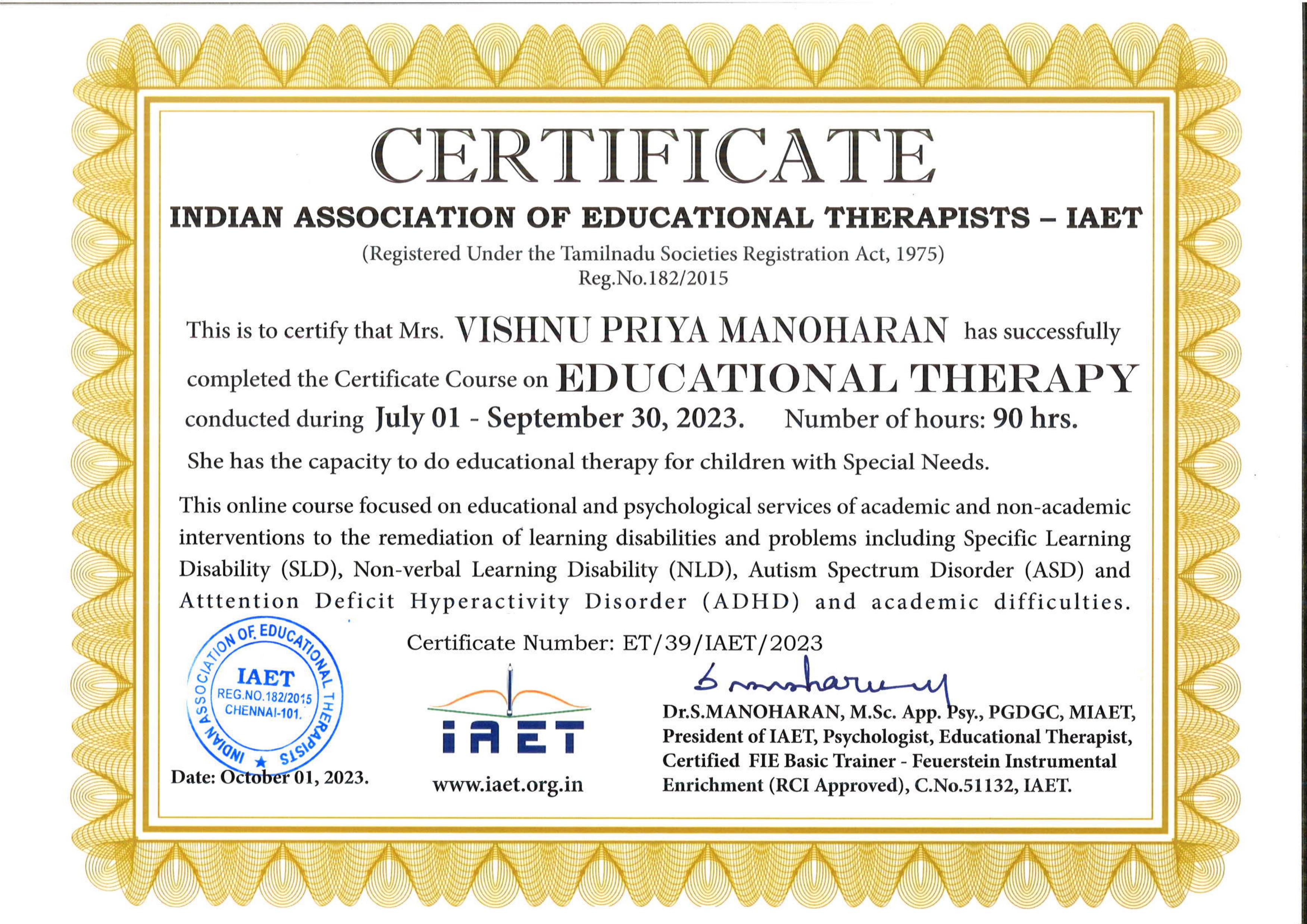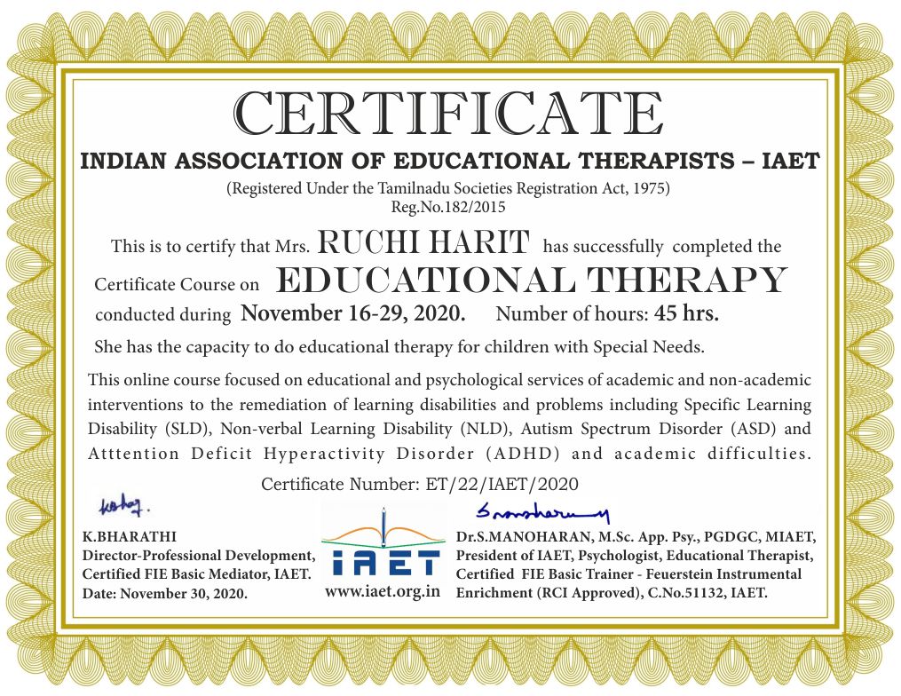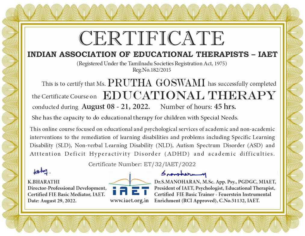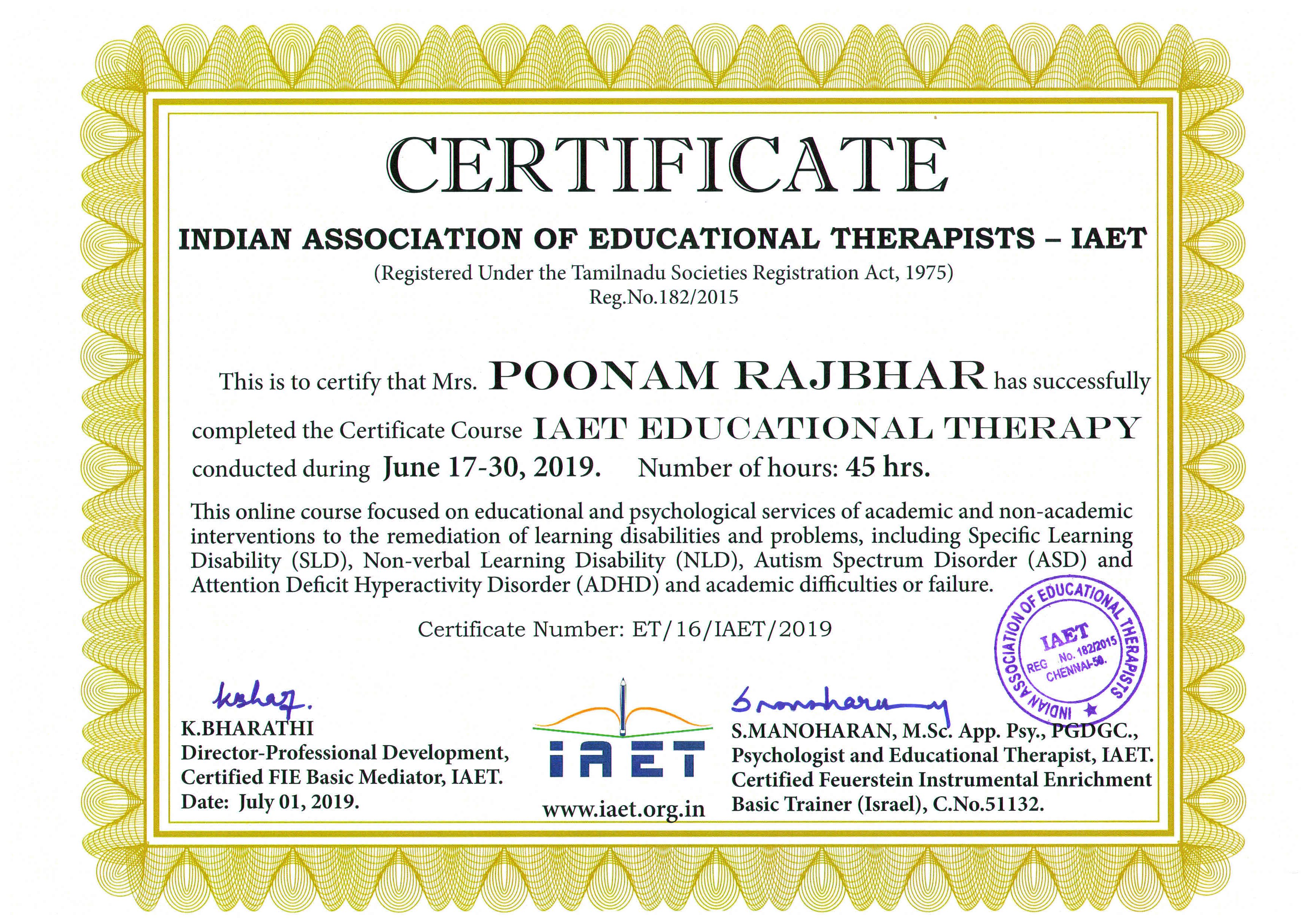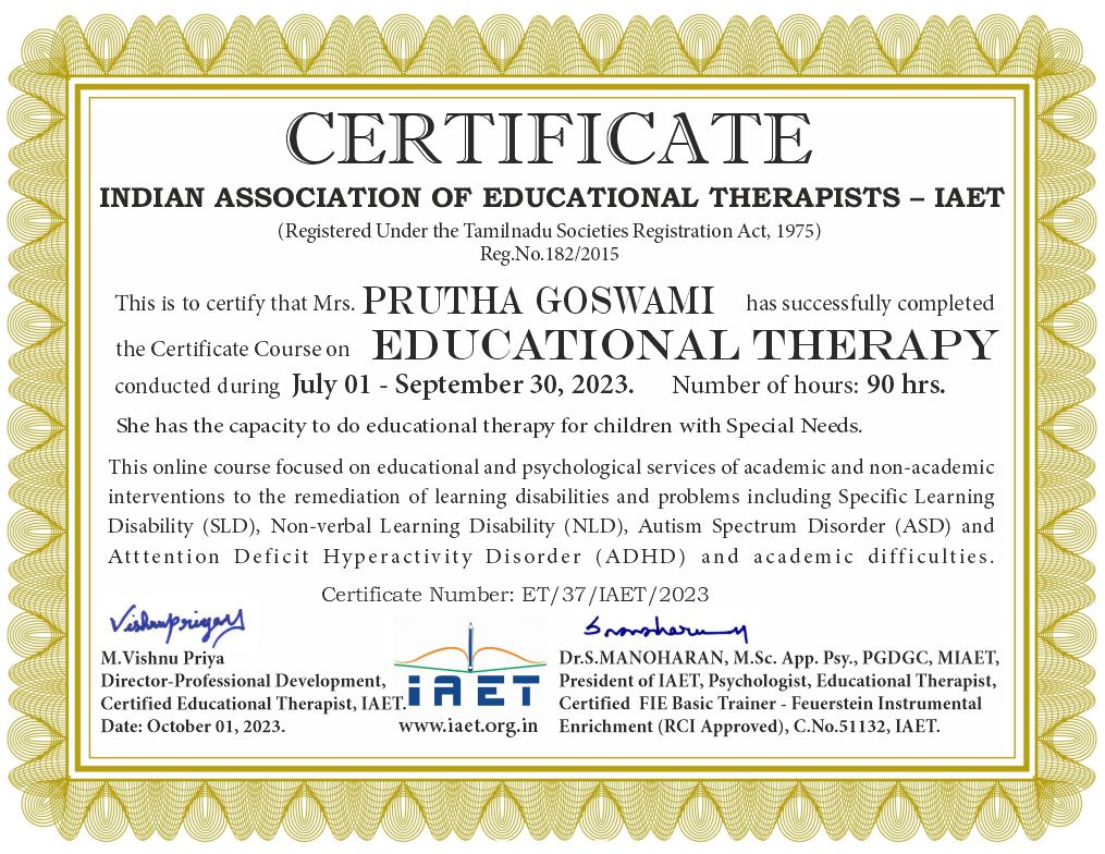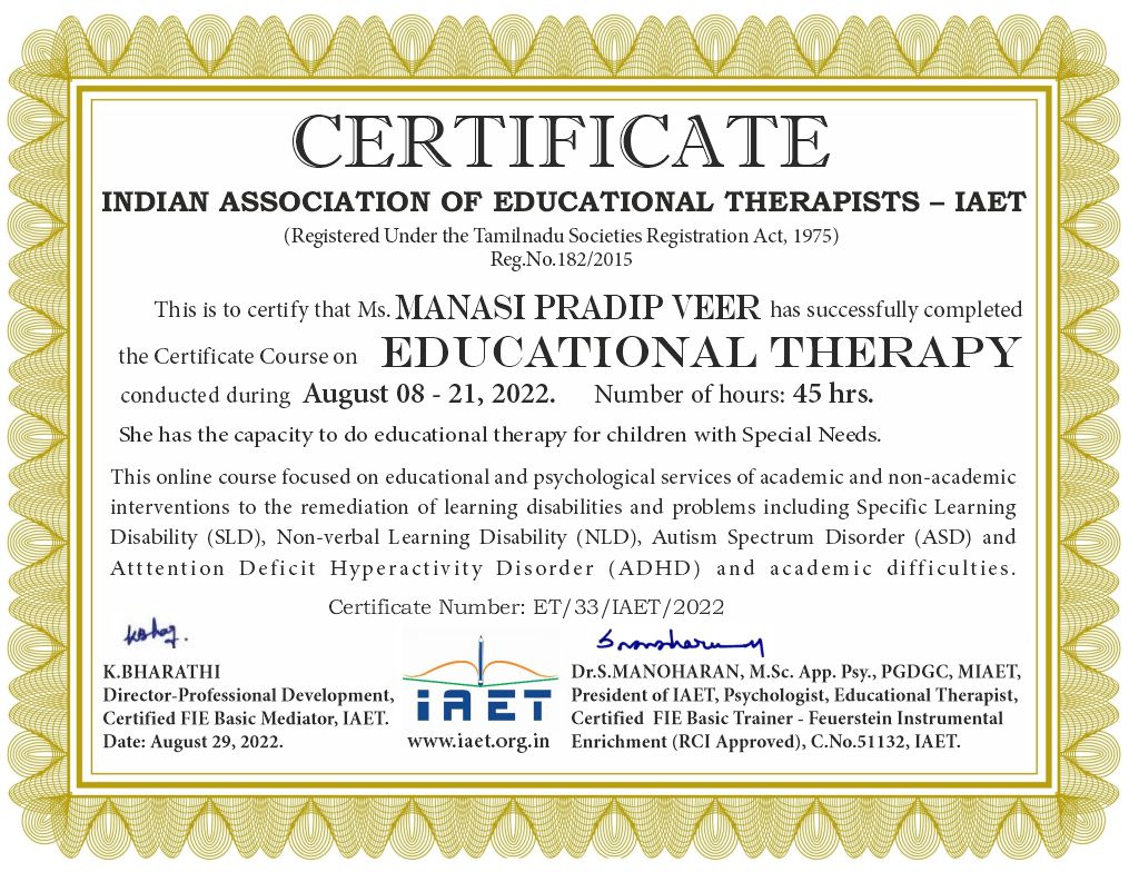 INDIAN ASSOCIATION OF EDUCATIONAL THERAPISTS - IAET