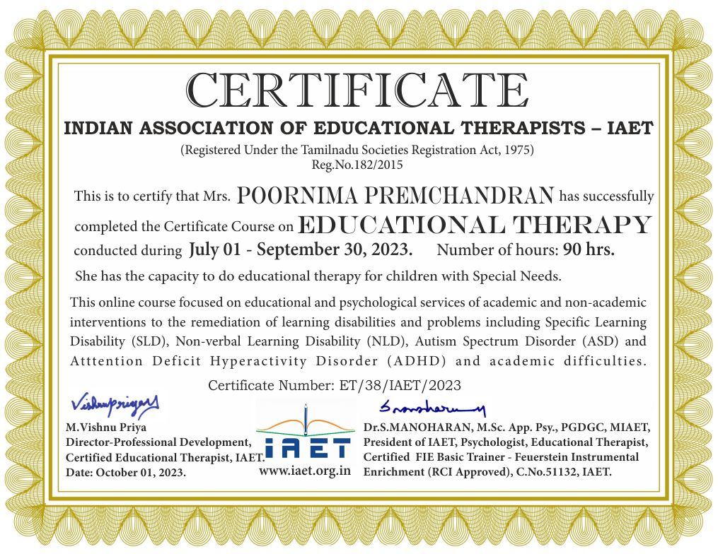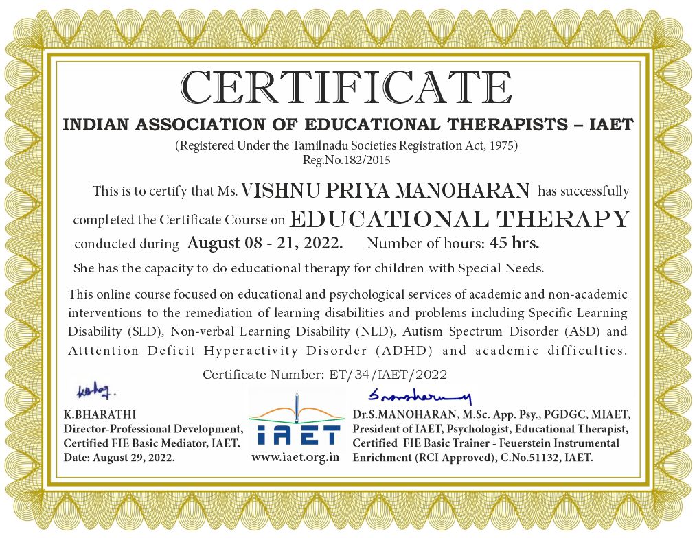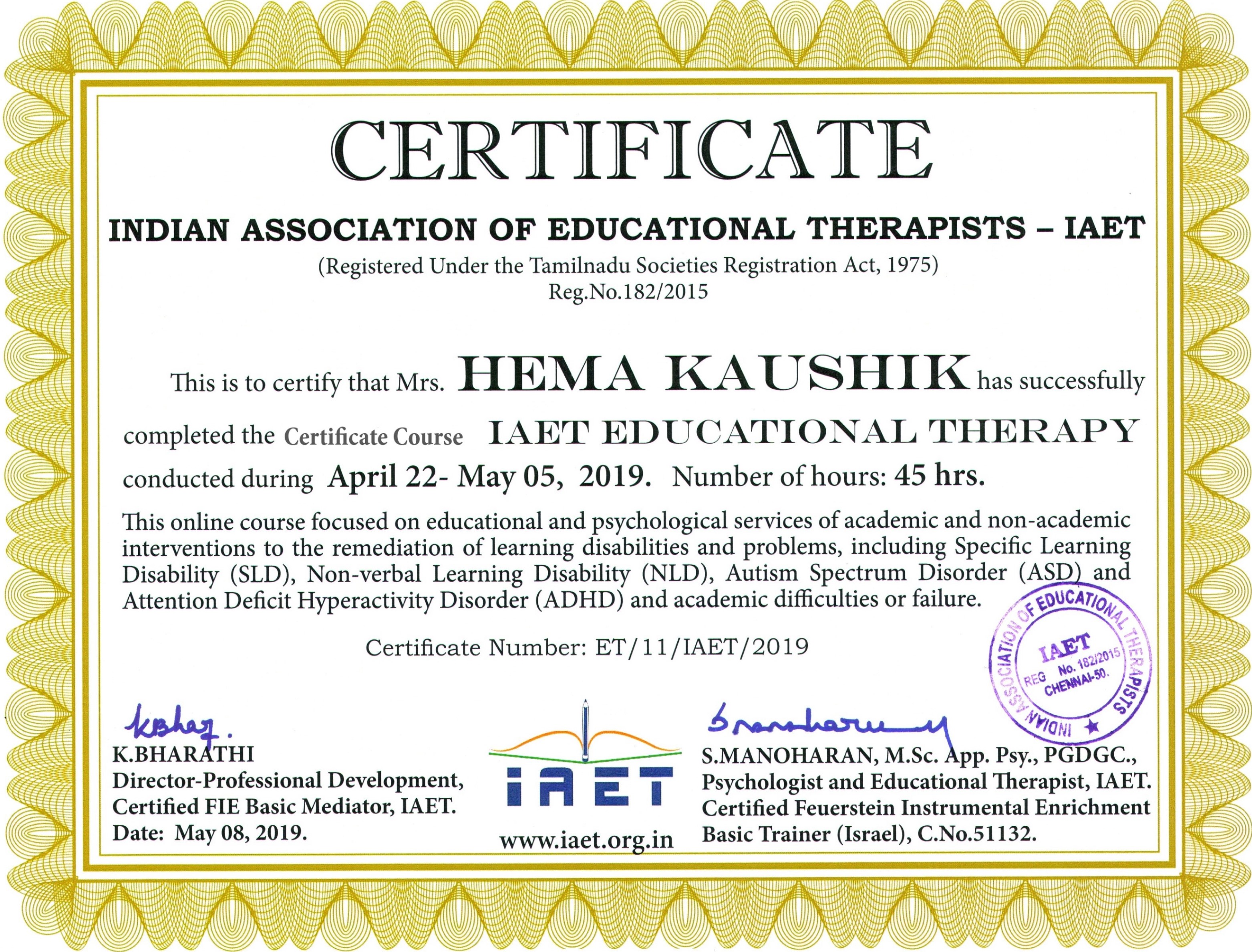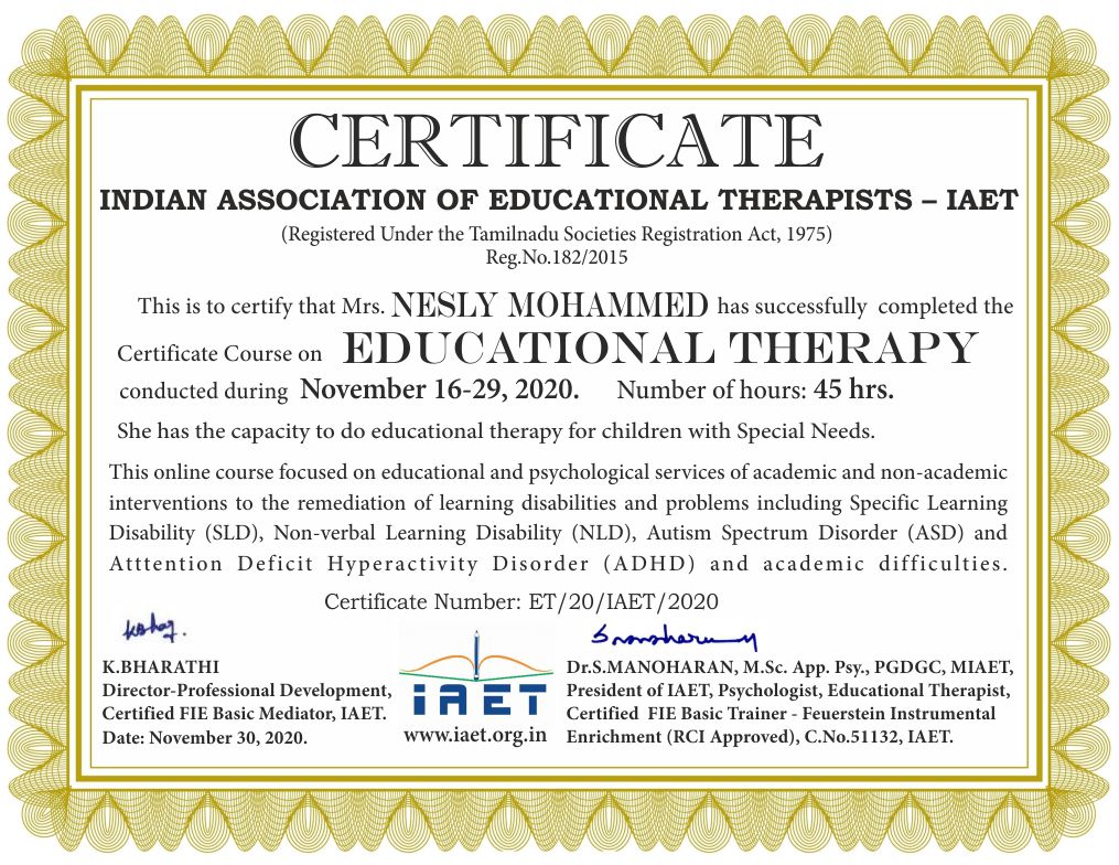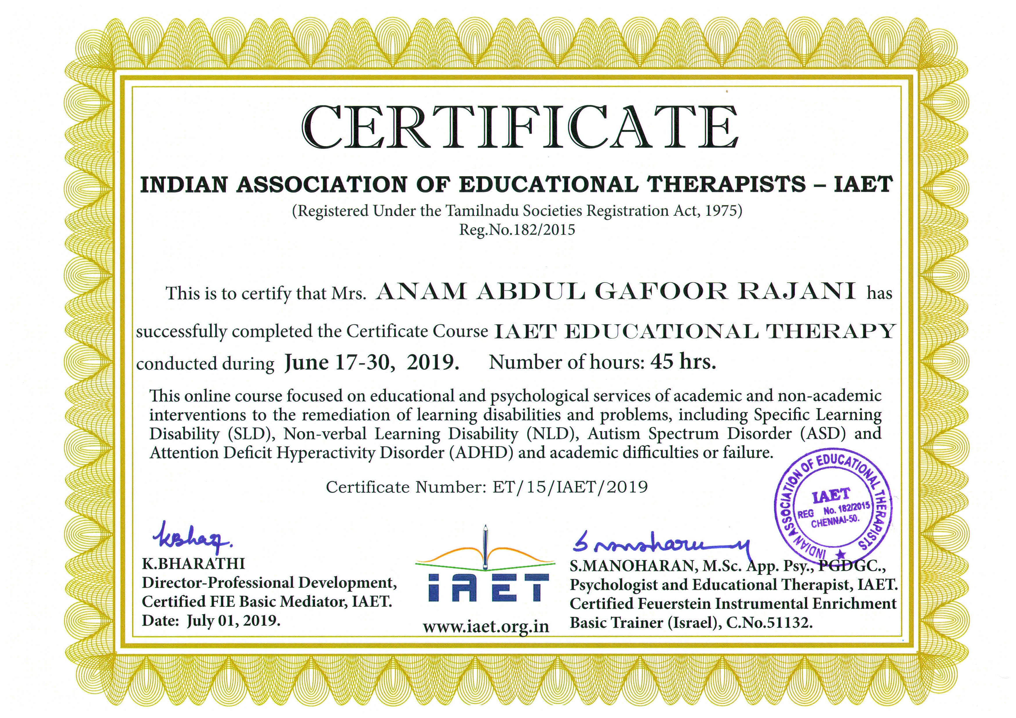 IAET EDUCATIONAL THERAPY CERTIFICATES