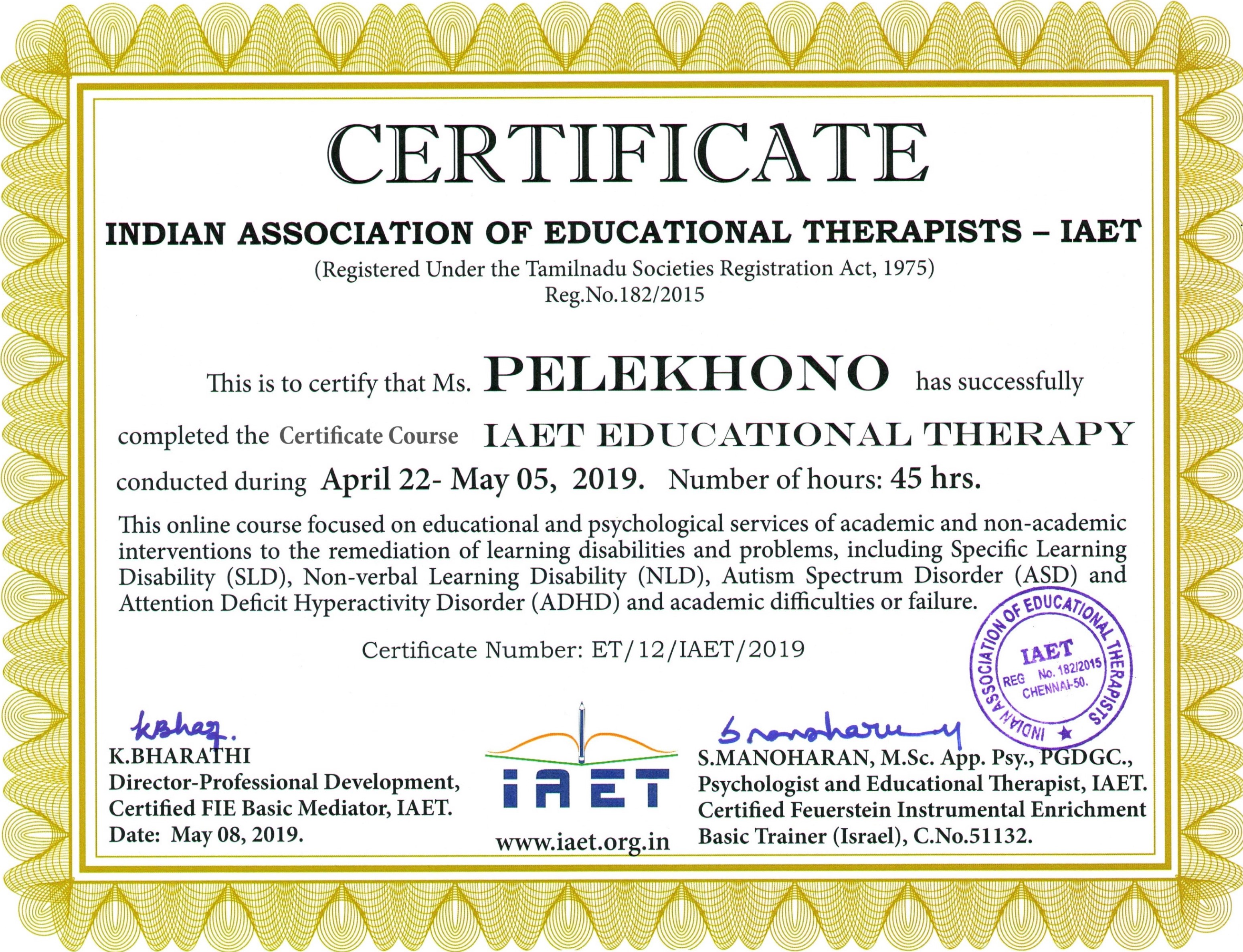 IAET EDUCATIONAL THERAPY CERTIFICATES FEBRUARY 2019